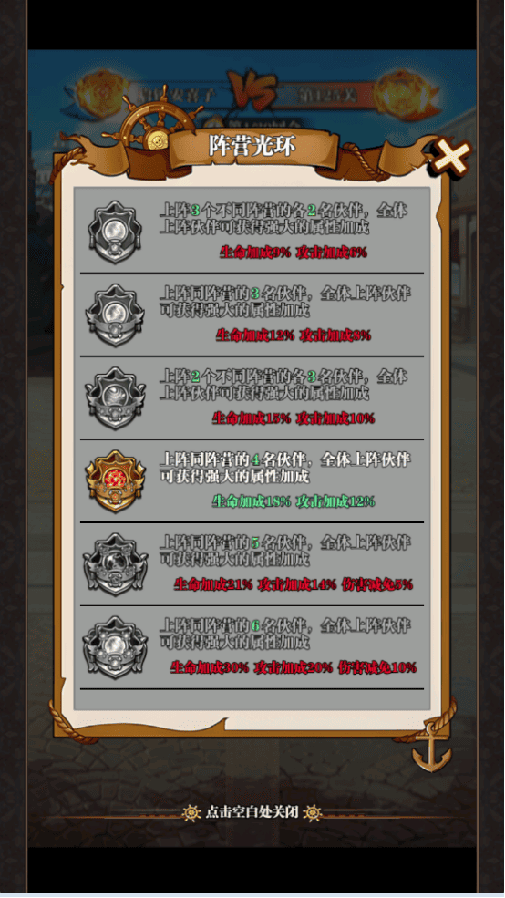 玩家需巧妙構(gòu)建戰(zhàn)斗陣容,依據(jù)不同戰(zhàn)局靈活調(diào)配角色,憑借策略與絕技征服對(duì)手,享受燒腦且激爽的戰(zhàn)斗快感。隊(duì)伍中可以編入6名角色,角色有4種陣營(yíng)和4種定位。陣營(yíng)分為世界政府、新星團(tuán)、大海賊、海軍和五皇;定位分為輔助、肉盾、輸出、控制。陣營(yíng)之間沒有克制效果,會(huì)根據(jù)上陣中同陣營(yíng)的英雄數(shù)量獲得傳說之力的加成。戰(zhàn)斗的攻擊順序是根據(jù)在布陣的站位1-6號(hào)進(jìn)行,雙方一號(hào)角色會(huì)優(yōu)先行動(dòng)以此類推,可以根據(jù)你隊(duì)伍中6名角色的定位設(shè)置合理的排陣出手順序。